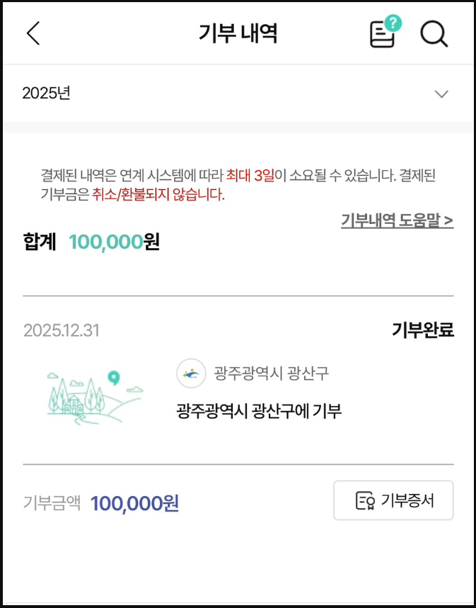 광주 광산구 선택: 저는 이번에 광주광역시 광산구에 기부했습니다. 기부금이 광산구의 소중한 복지 사업에 쓰인다고 해요.