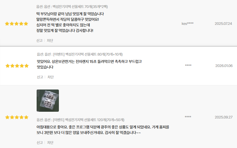 그래서 “떡 별로 안 좋아하는데 맛있게 먹었다” 라는 후기까지 남겨주셨습니다.