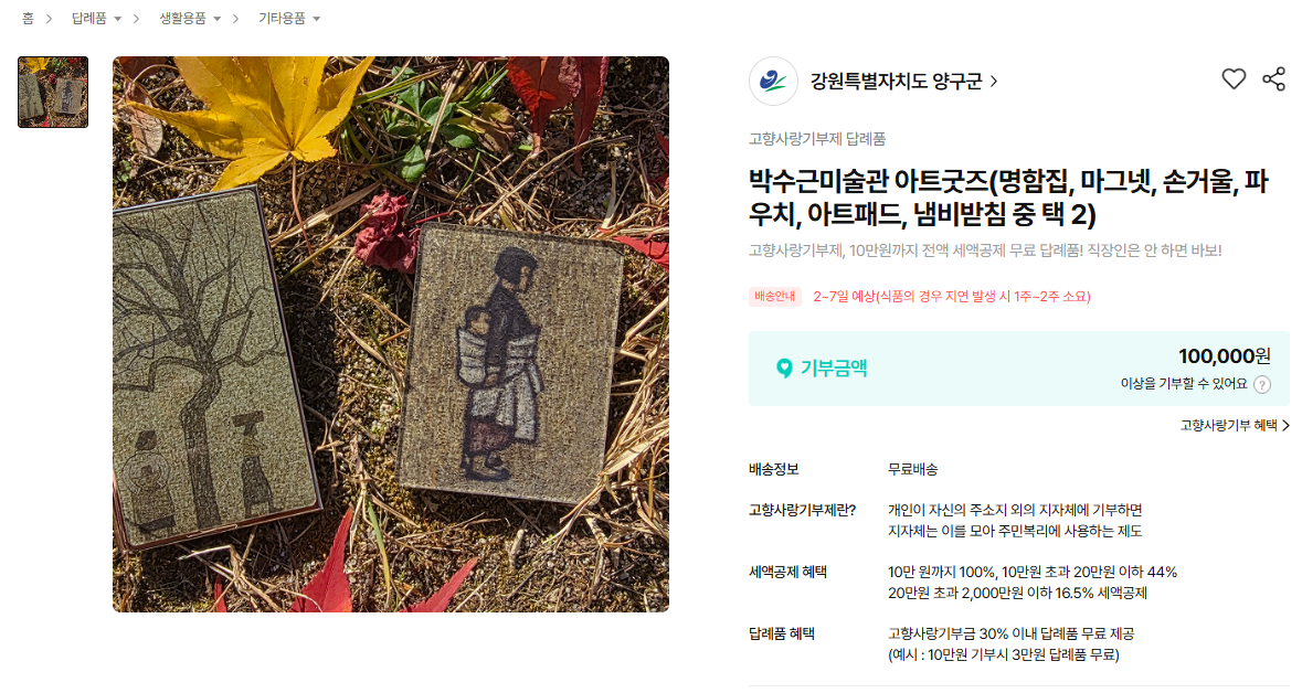 먹거리 말고 조금 다른 느낌의 답례품을 원하는 분께 추천할 만합니다. 양구의 문화 자산을 함께 경험할 수 있다는 점이 매력입니다.