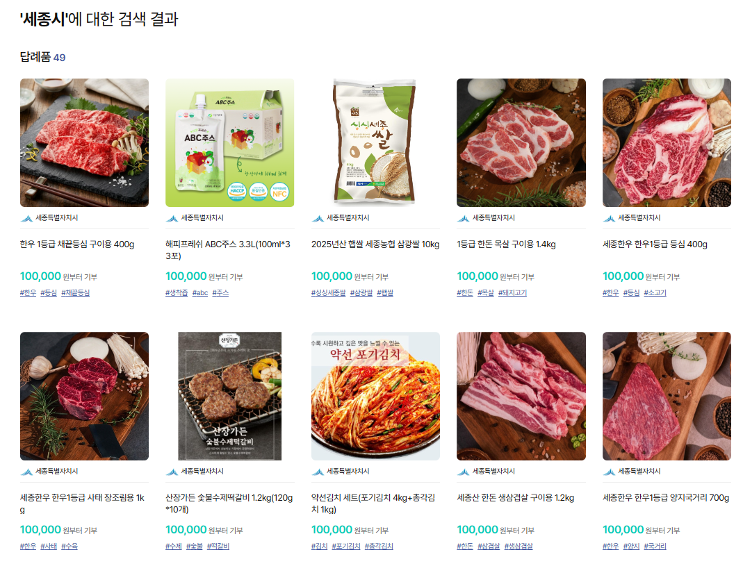 세종 외 지역에 거주하고 있다면, 위기브를 통해 세종시에 기부하고 세종 답례품도 받아볼 수 있습니다.